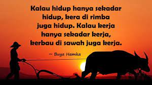 Kalau hidup hanya sekedar hidup KERA DI RIMBA JUGA HIDUP kalau kerja hanya sekedar kerja KERBAU DI SAWAH JUGA KERJA.